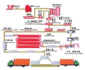 原材料均由汽車運入廠內,粉煤灰(或砂、石粉)在原材料場集中,使用時用裝運入料斗。袋裝水泥或散裝水泥在水泥庫內儲存。使用時用裝運入料斗。化學品、鋁粉等分別放在化學品庫、鋁粉庫,使用時分別裝運至生產車間。